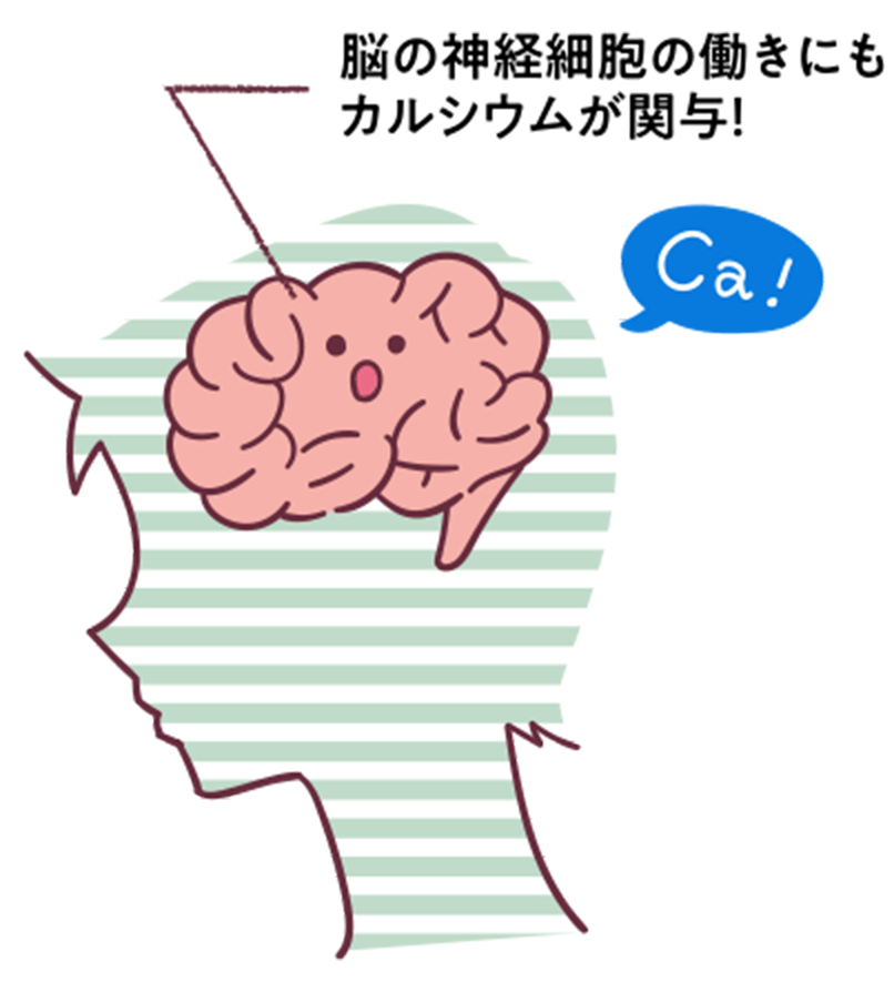 実はカルシウムは、血液を凝固させて出血を抑える、心筋の収縮を促す、筋肉の興奮を抑えるといった働きに加え、脳の神経細胞の活動にも深く関わっています。