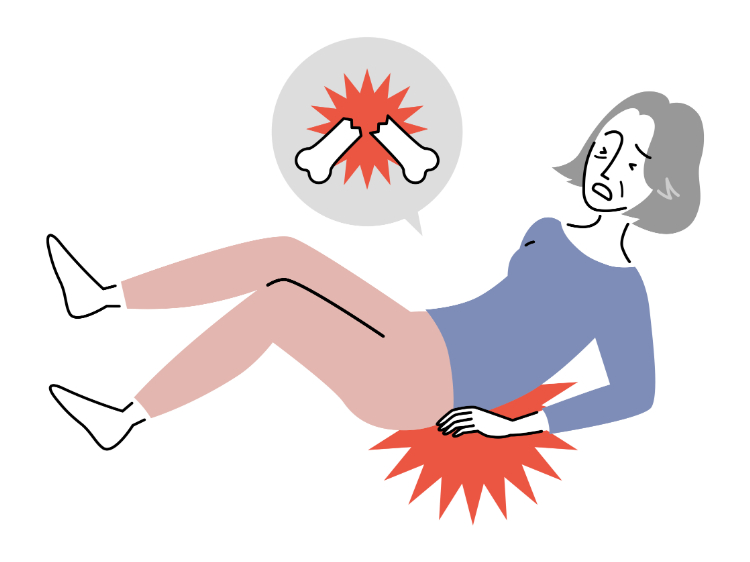 股関節まわりの骨折は、高齢になると転倒や骨粗しょう症がきっかけとなり、誰にでも起こり得るケガのひとつ。この骨折は寝たきり生活の原因になることもあるため、注意が必要です。