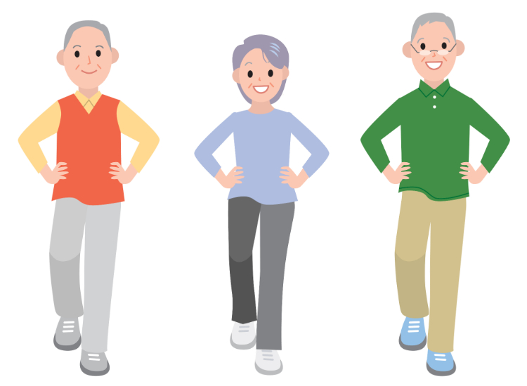 外出の際には、歩き方にも気を付けましょう。年齢を重ねて筋力が低下すると、歩幅が狭くなり、すり足歩行になりがちです。「かかとで着地し、つま先で地面を蹴る」歩き方を意識しましょう。